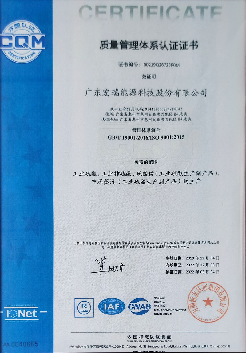 廣東宏瑞能源科技股份有限公司(簡稱“宏瑞股份”、“公司”)成立于2013年7月,坐落于大亞灣石化區(qū),公司及其下屬子公司目前在職人數(shù)約300人。公司系一家以硫化工為業(yè)務(wù)主線,以循環(huán)經(jīng)濟(jì)和園區(qū)經(jīng)濟(jì)為業(yè)務(wù)特色的現(xiàn)代化化工企業(yè),公司始終堅(jiān)持以技術(shù)進(jìn)步推動(dòng)轉(zhuǎn)型升級,以綠色化學(xué)實(shí)現(xiàn)可持續(xù)發(fā)展,主營業(yè)務(wù)由基礎(chǔ)化工逐步向覆蓋精細(xì)化工與新材料進(jìn)行拓展。